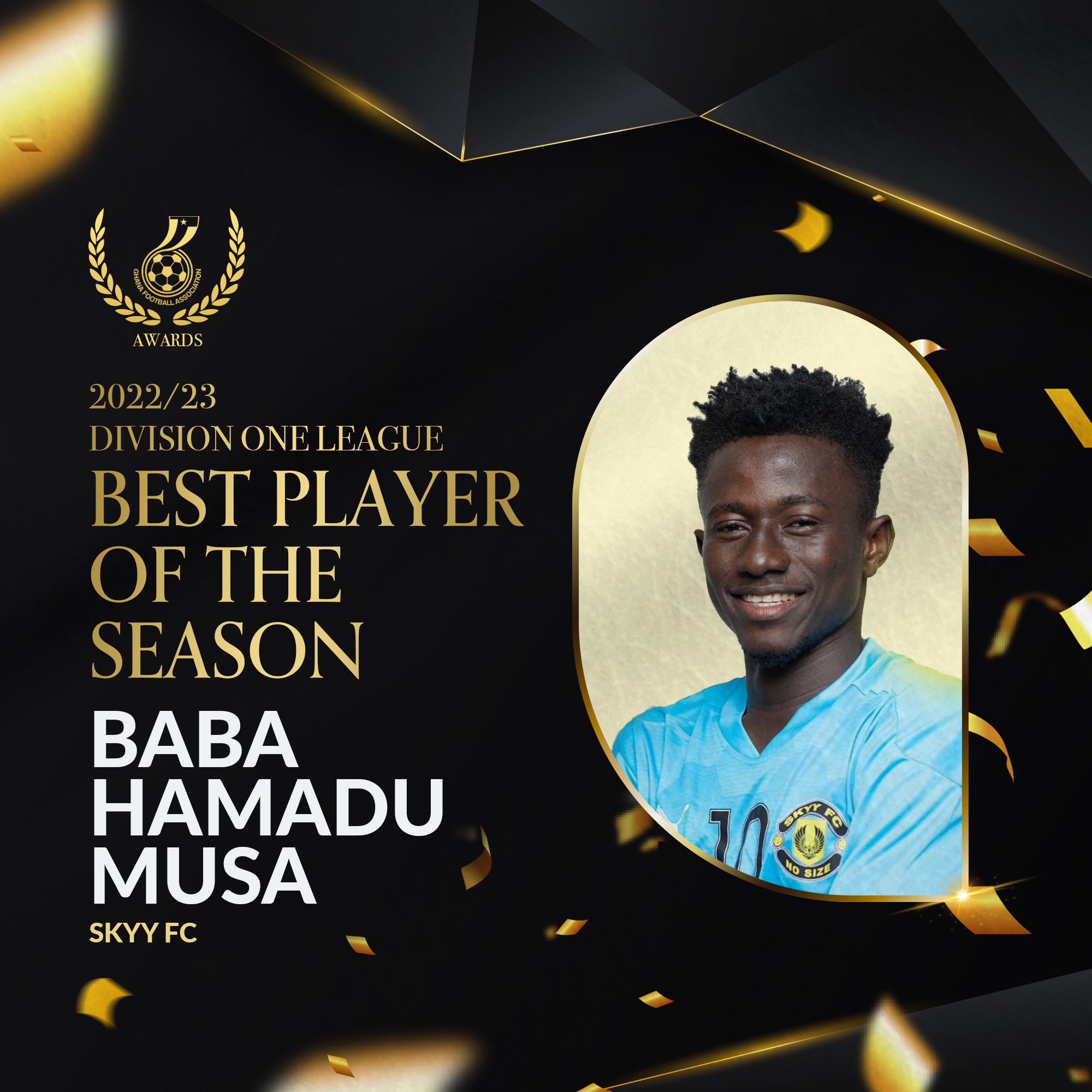 Baba Hamadu Musah, formerly of Skyy FC and now a member of FC Samatex in the Ghana Premier League, has been awarded the prestigious title of Best Player in the Access Bank Division One League at the Ghana Football Awards 2023.