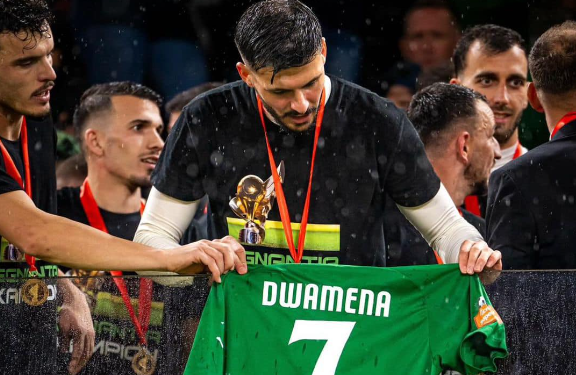In a touching gesture, Egnatia’s players held up Dwamena’s jersey in honour of the forward, while others showcased artistic tributes to celebrate his memory.