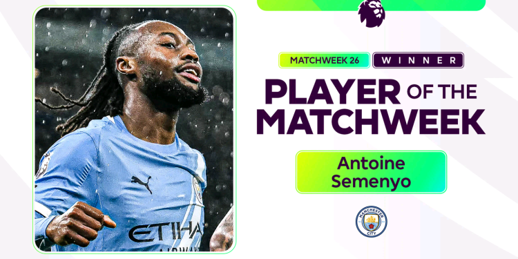 Antoine Semenyo has been voted the English Premier League Player of the Week following his outstanding display in Manchester City’s 3-0 victory over Fulham.