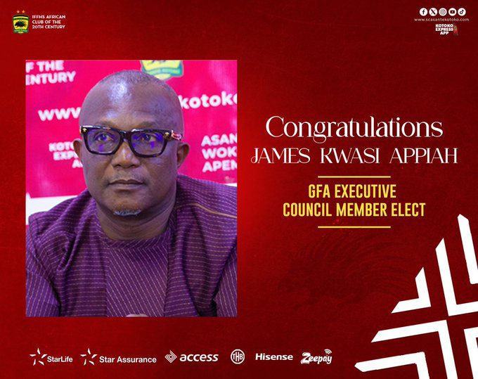 Asante Kotoko has extended warm congratulations to their Technical Director, James Kwasi Appiah, for securing a position on the Executive Council of the Ghana Football Association (GFA).