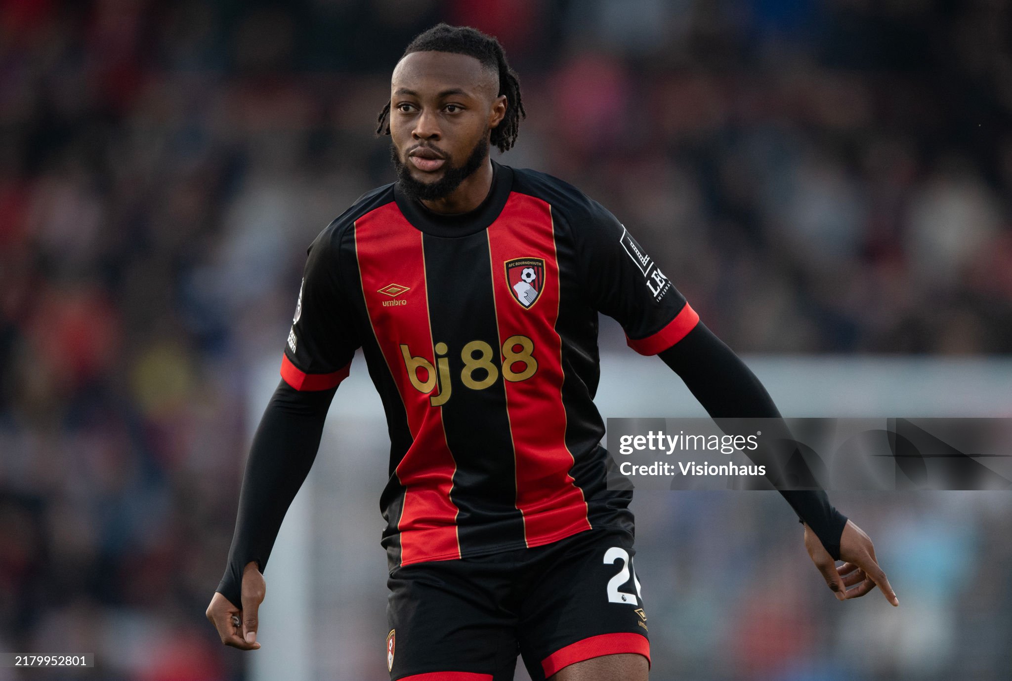 BOURNEMOUTH, ENGLAND - OCTOBER 19:  Antoine Semenyo of AFC Bournemouth during the Premier League match between AFC Bournemouth and Arsenal FC at Vitality Stadium on October 19, 2024 in Bournemouth, England. (Photo by Visionhaus/Getty Images)