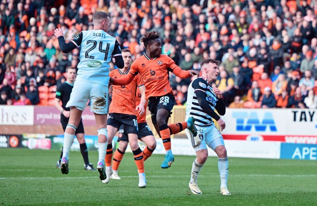 Dundee United coach Jim Goodwin applauds Mathew Anim Cudjoe for outstanding performance in comeback victory against Queens Park
