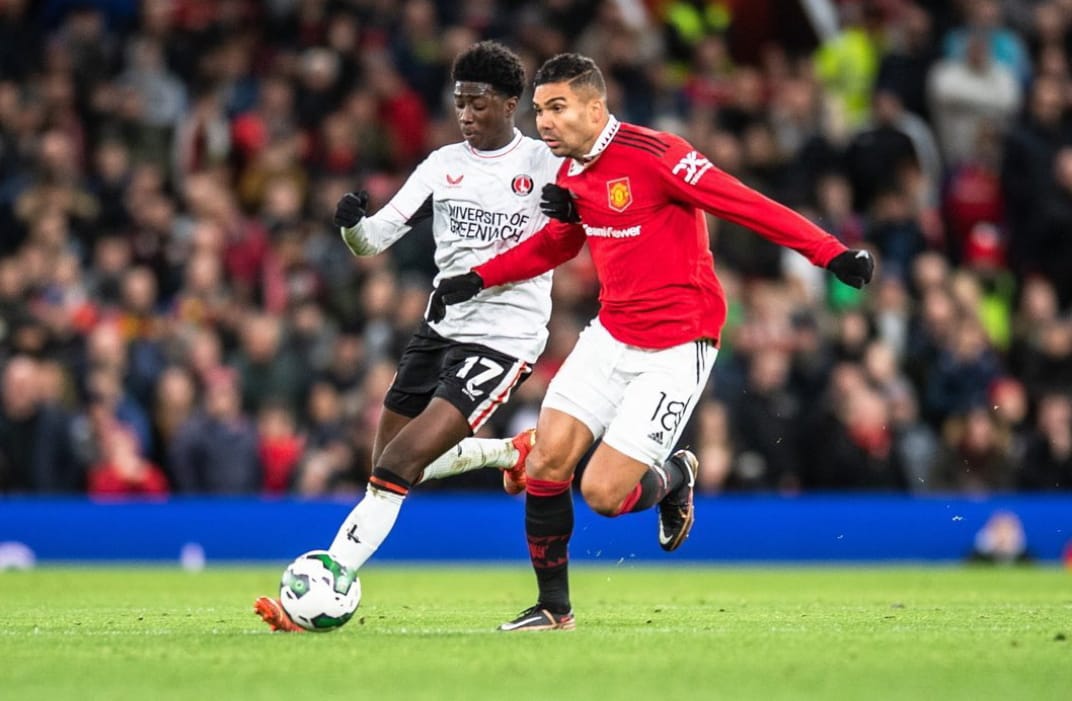 The young Crystal Palace FC forward on loan at Charlton started the game for the Red and Blacks outfit in their 3-0 loss away at Old Trafford.