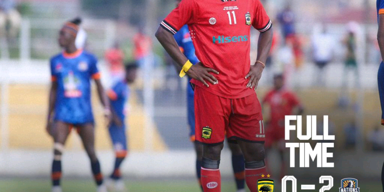 Asante Kotoko suffered their fourth consecutive defeat on Sunday, losing 2-0 to local rivals Nations FC at the Len Clay Stadium in Obuasi. The loss plunges the Porcupine Warriors further into crisis as their once-promising season continues to unravel.