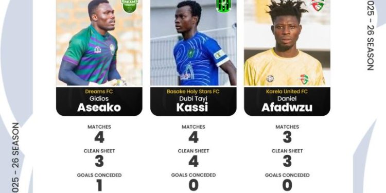 Aseako played a key role for Dreams FC, keeping three clean sheets in four matches and conceding just once. His consistency helped the team secure three wins and a draw, extending their unbeaten run during the period.