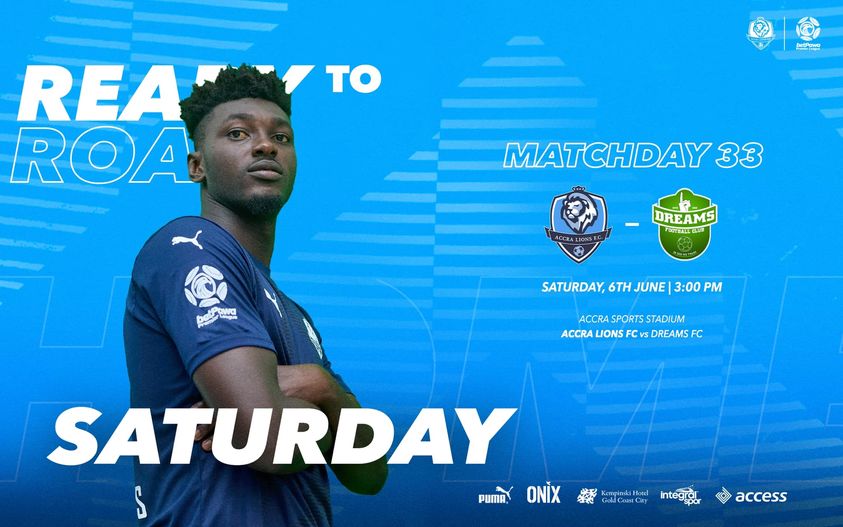 In an exciting Week 33 match-up, Accra Lions will face off against Dreams FC on Saturday afternoon at the Accra Sports Stadium.