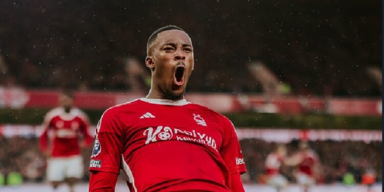 Just before halftime, Nottingham Forest scored the first goal of the match, thanks to Awoniyi who showed how good he is at scoring goals.