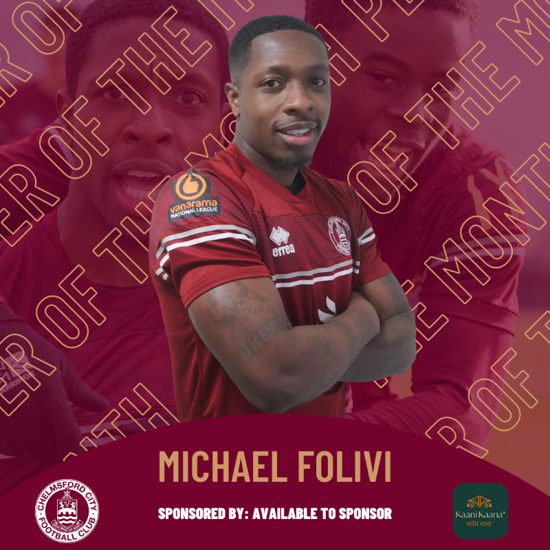 Ghanaian forward Michael Folivi has been named as Chelmsford FC Player-Of-The-Month for the month of match.