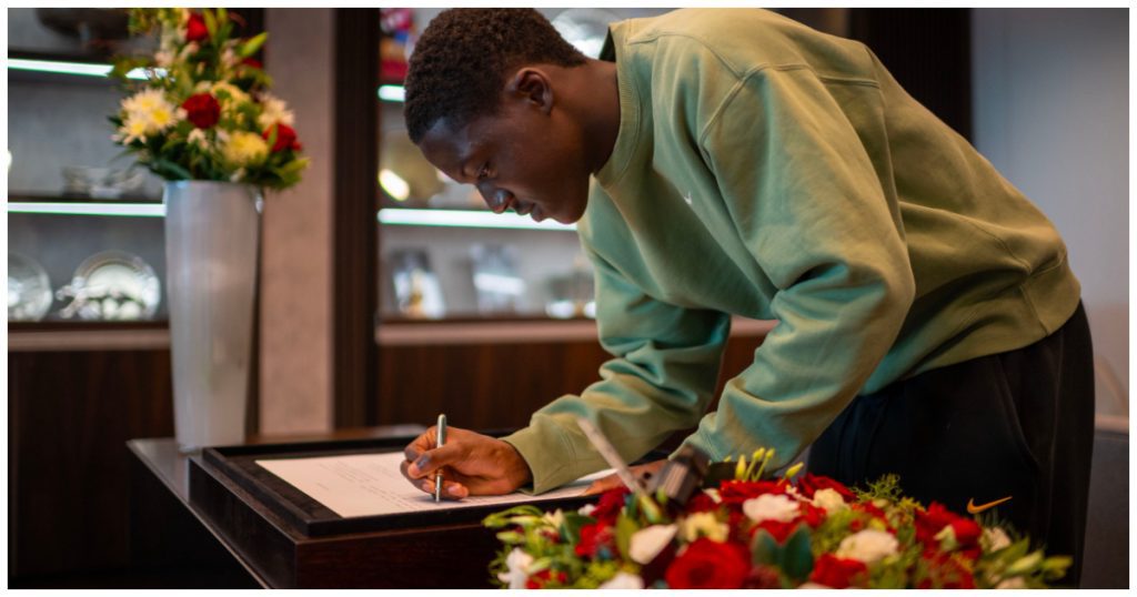 English-born Ghanaian midfielder Kobbie Mainoo joined his Manchester United teammates in signing the book of condolence for the late Sir Bobby Charlton.