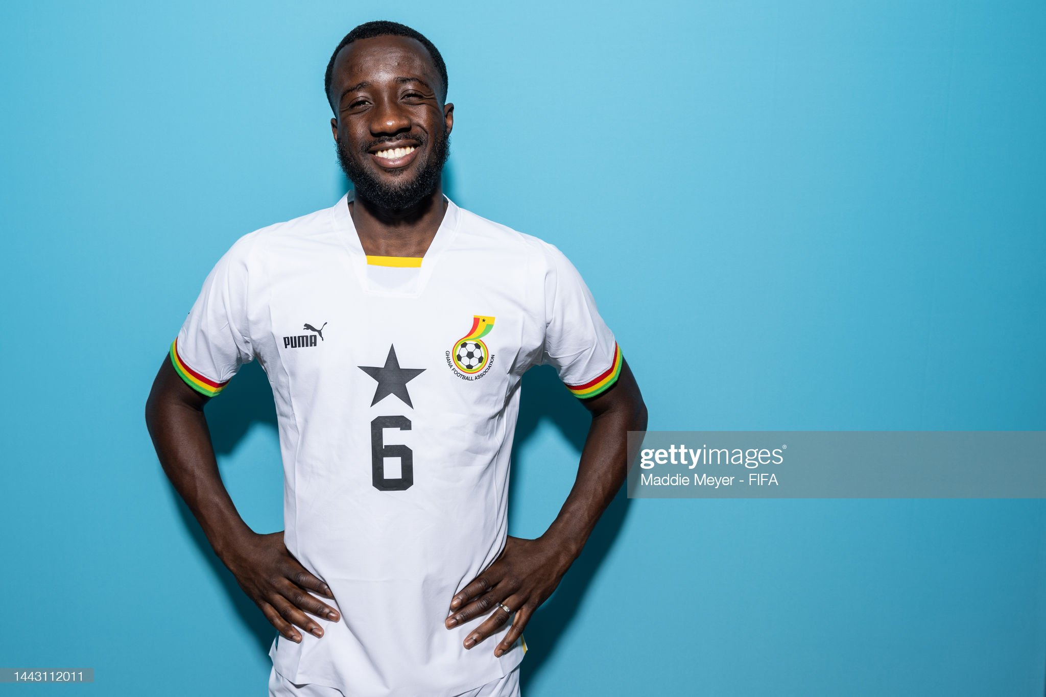 DOHA, QATAR - NOVEMBER 20: Elisha Owusu of Ghana poses during the official FIFA World Cup Qatar 2022 portrait session on November 20, 2022 in Doha, Qatar. (Photo by Maddie Meyer - FIFA/FIFA via Getty Images)
