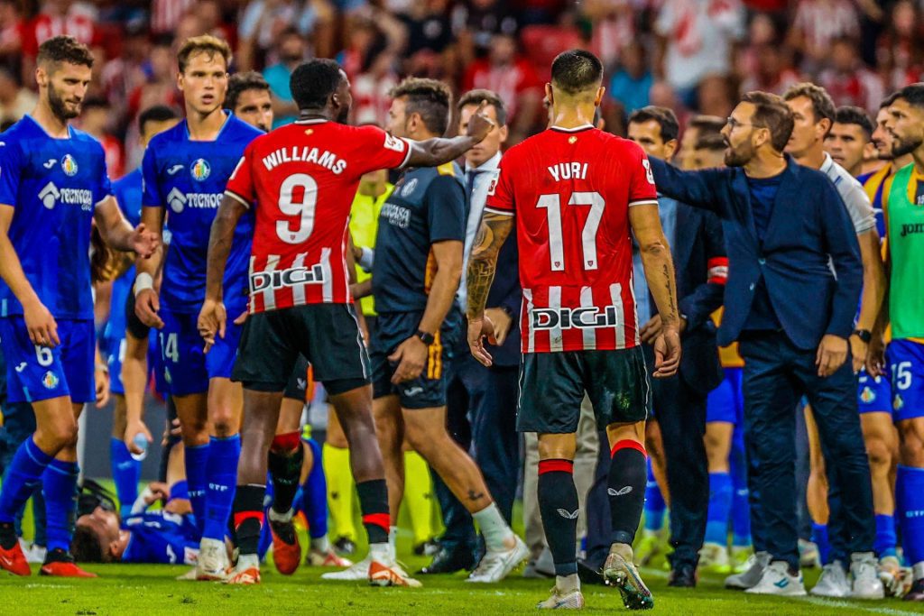 Inaki Williams who scored his third consecutive goal against Getafe was not happy about the tactics of Jose Bordalas which ended in a confrontation on the touchline.