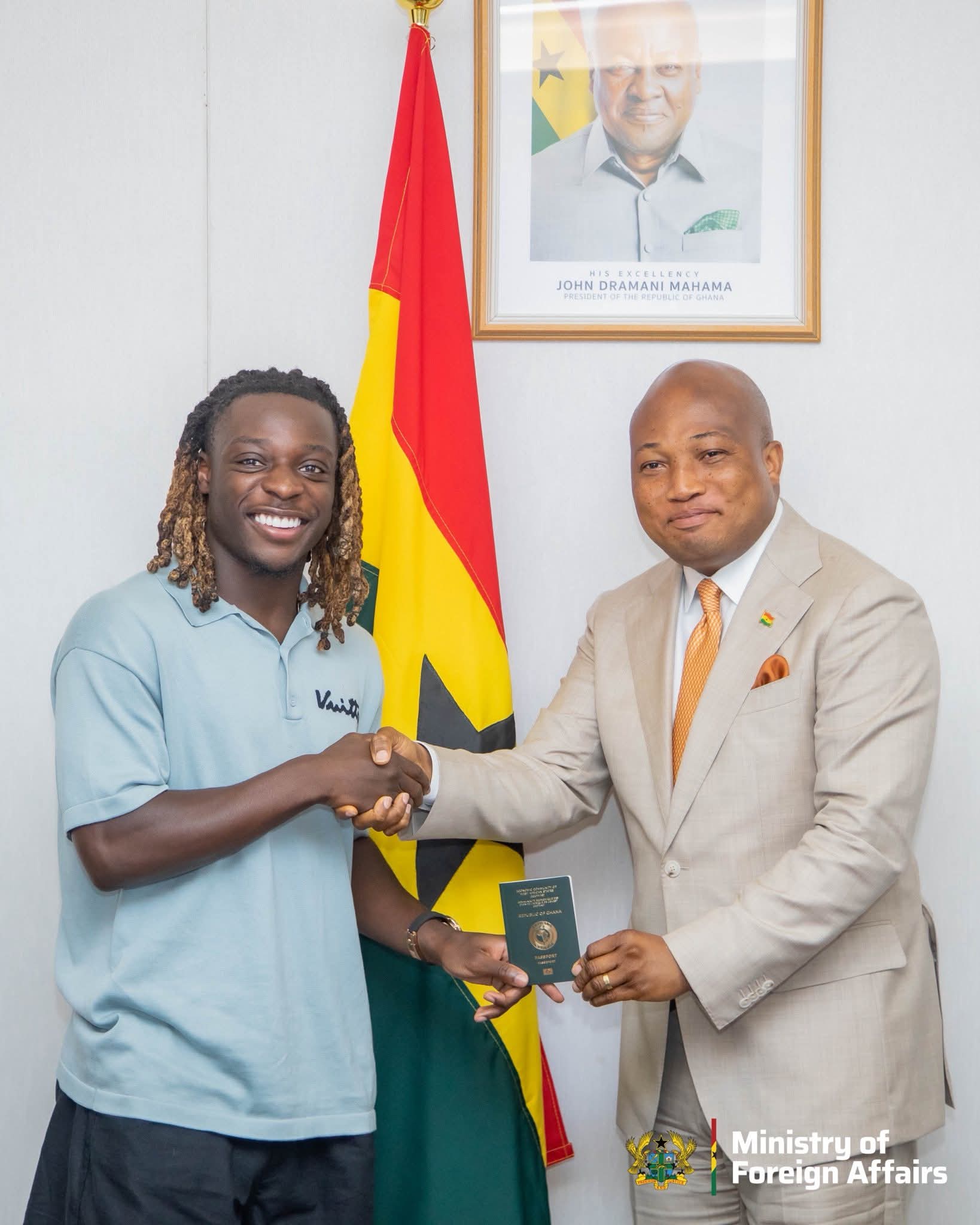 Jérémy Baffour Doku, the talented Ghanaian-Belgian footballer who currently plays for Manchester City, has officially received his Ghanaian passport for the first time — a proud moment that highlights his connection to his heritage.