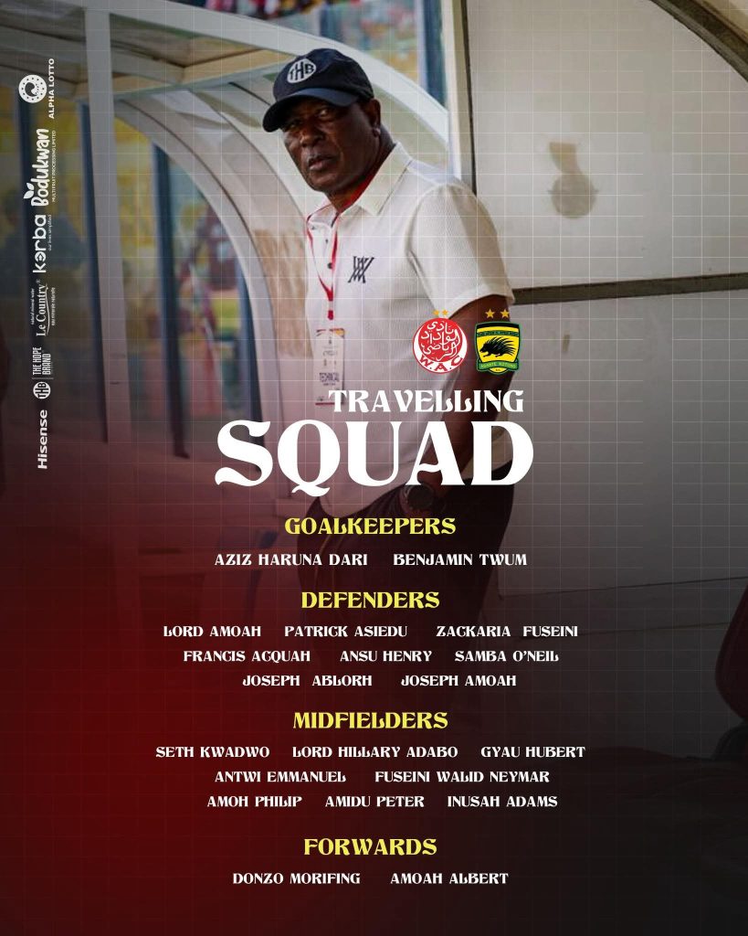 The defensive line includes Patrick Asiedu, Zackaria Fuseini, Francis Acquah, Samba O’Neil, and Joseph Amoah, while midfielders such as Lord Hillary Adabo, Gyau Hubert, Fuseini Walid Neymar, Amidu Peter, and Inusah Adams are expected to control the center of the park.