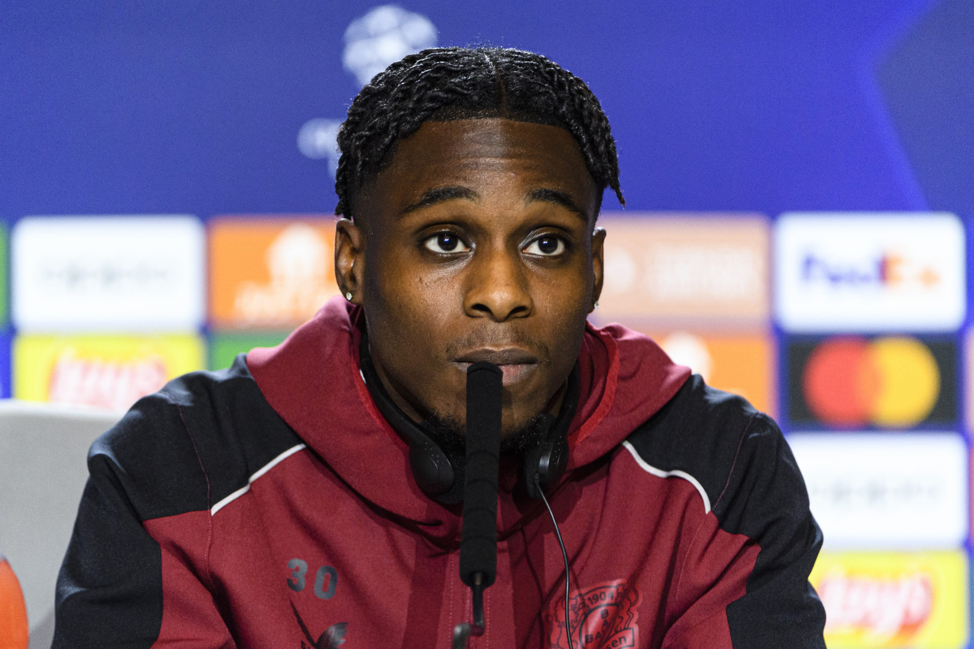 MADRID, SPAIN - OCTOBER 25: Jeremie Frimpong of Bayer Leverkusen ahead of their UEFA Champions League group B match against Atletico Madrid at Civitas Metropolitano Stadium on October 25, 2022 in Madrid, Spain. (Photo by Alvaro Medranda/Eurasia Sport Images/Getty Images)