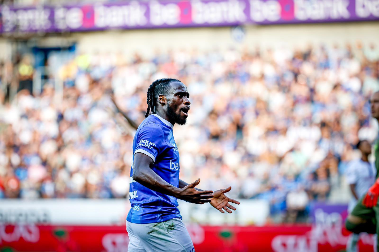 The home team, Genk were reduced to 10 men very early in the game after Christopher Bonsu Baah was sent off for a second bookable offence.
