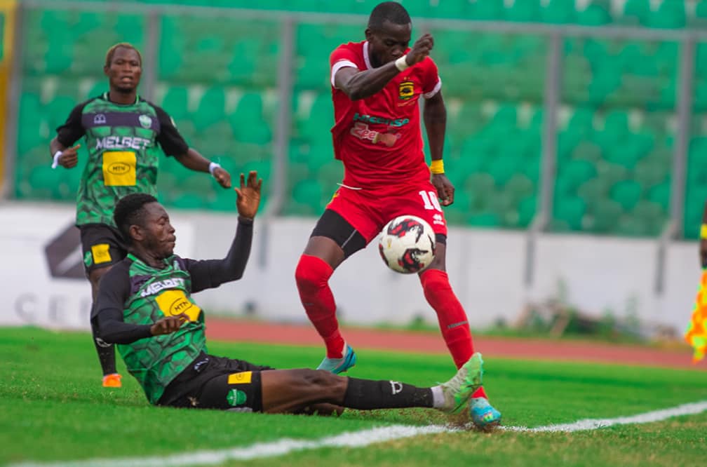 After the break, Asante Kotoko made an early substitution, bringing on Eric Zeze to replace the injured Enoch Morrison. Eric immediately made an impact with a defense-splitting pass to Cameroonian Mfegue, but Ali Jalilu made a crucial clearance to prevent Mfegue from scoring his fifth goal of the season in the 56th minute.