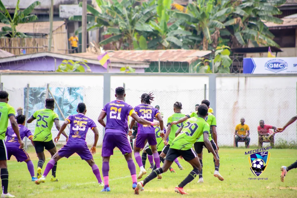 In an exciting match on Wednesday afternoon, Medeama SC narrowly defeated Dreams FC 3-2. The home team dominated the game in the early minutes and was rewarded with the opening goal in the 6th minute by Jonathan Sowah, which sent the Yellow and Mauve supporters into jubilation.