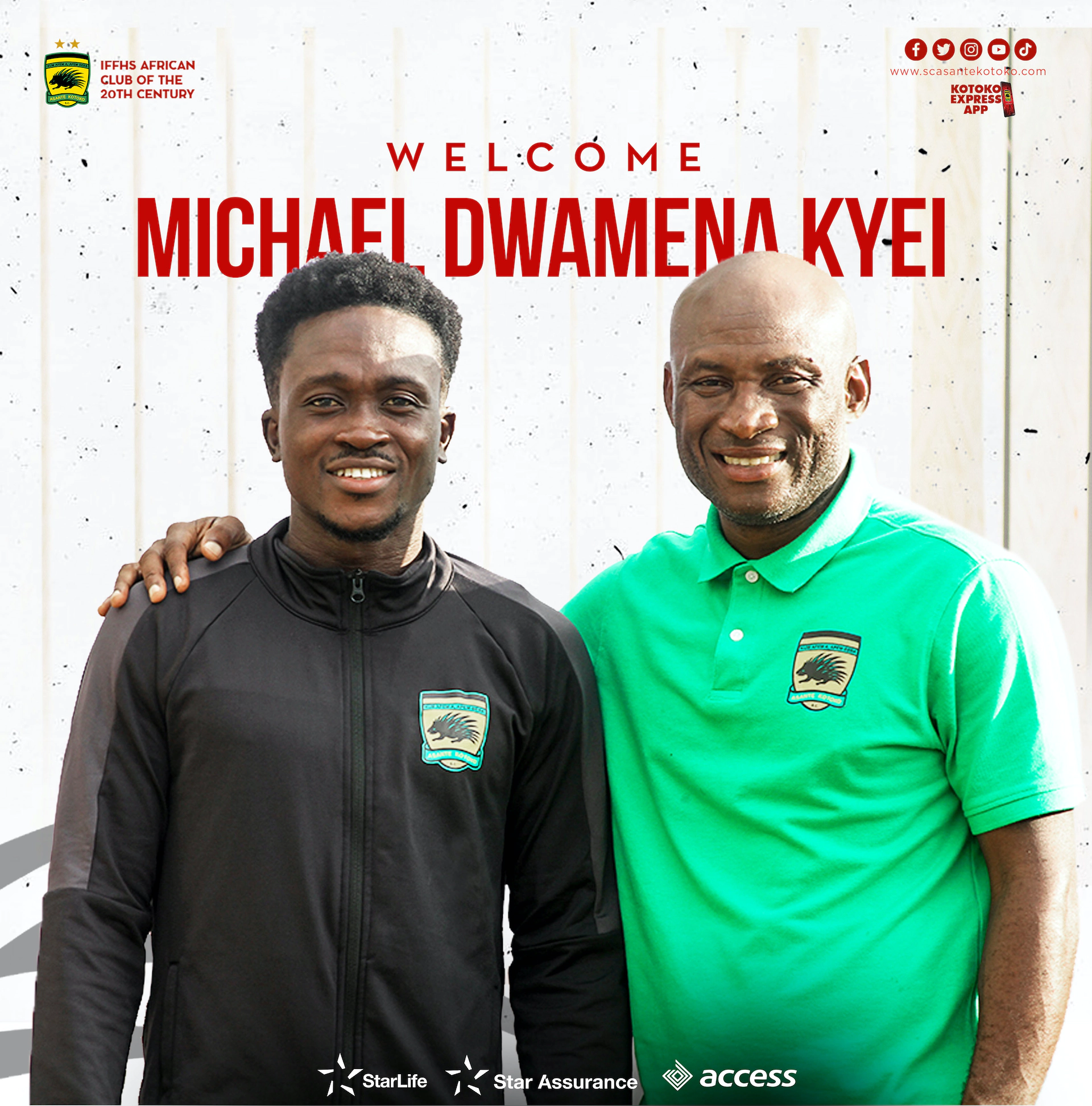 Michael Kyei Dwamena signed a three year deal with Asante Kotoko.