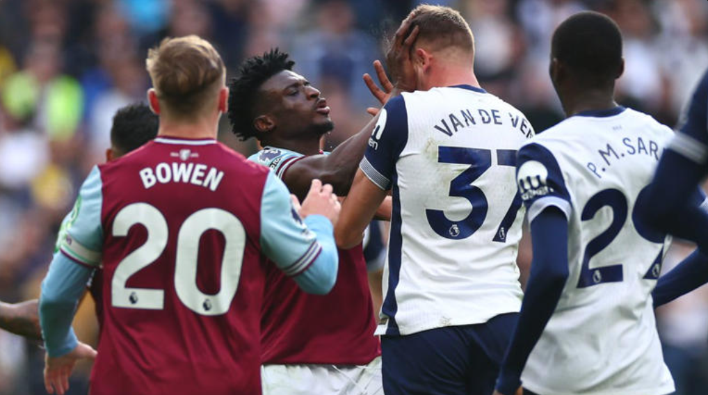 West Ham United star midfielder Mohammed Kudus had a moment of madness as he got sent off for pushing two players in the face during his side’s Premier League clash with Tottenham on Saturday afternoon.