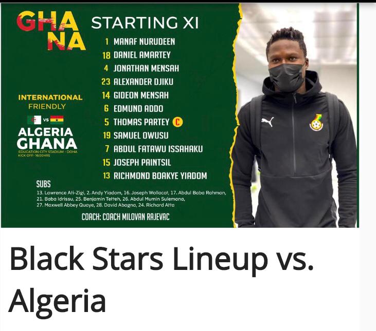 Black Stars head coach Milovan Rajevac has named a very exciting starting line up for the Pre-AFCON friendly against Algeria this afternoon in Doha, Qatar.