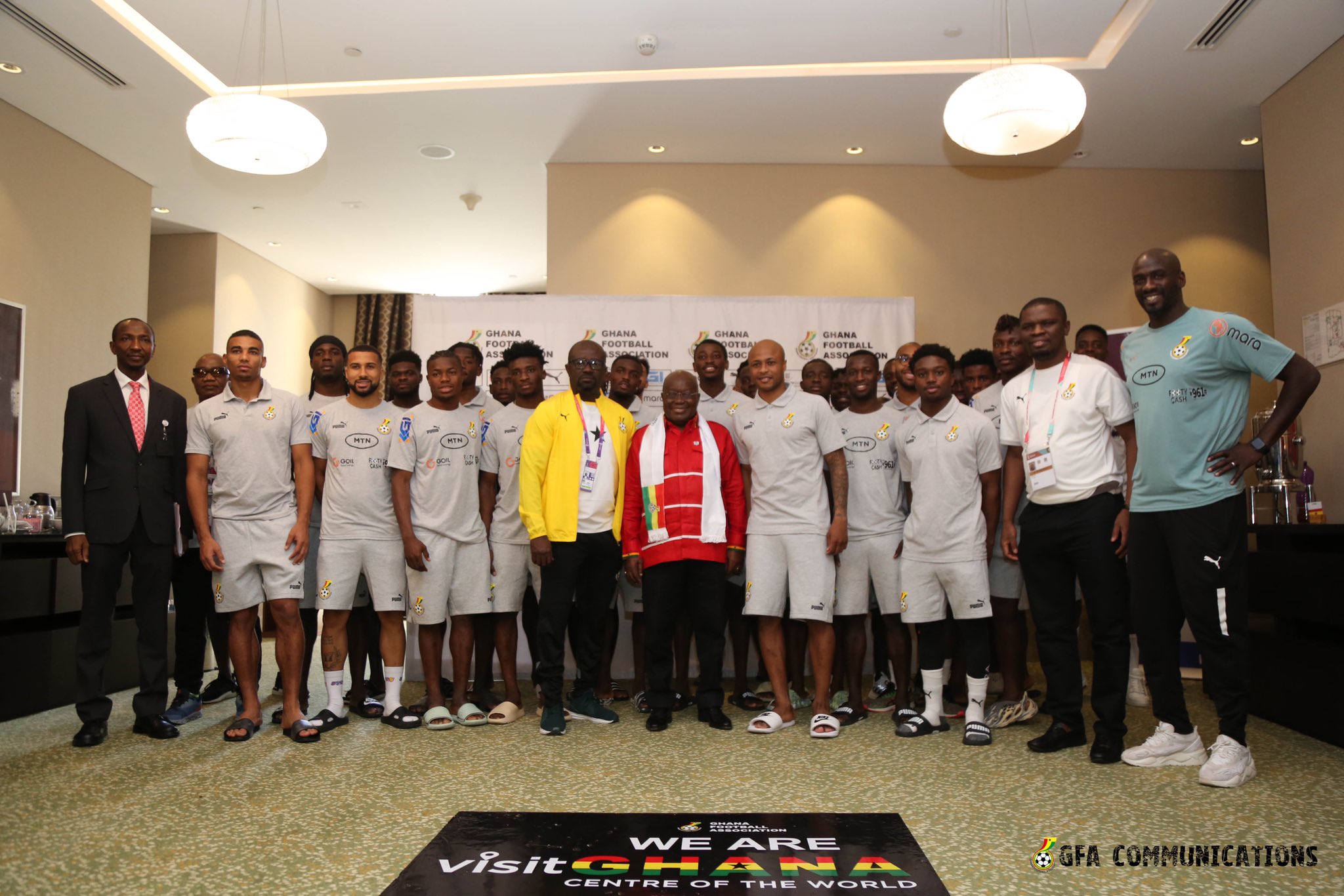 Ghana’s President Nana Addo Dankwah Akufo-Addo has visited the Black Stars hotel in Doha ahead of their first game at the 2022 FIFA World Cup.