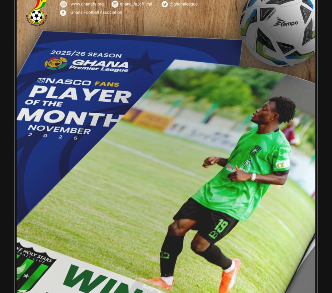 Prince Tweneboah, the winger for Basake Holy Stars, has been named the Ghana Premier League NASCO Player of the Month for November after an impressive run of performances.