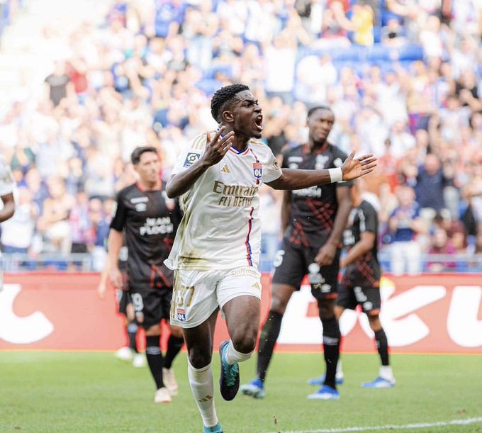 Ernest Nuamah’s debut goal was scored from a sweet volley that earned him some amazing chants from the fans of Lyon.