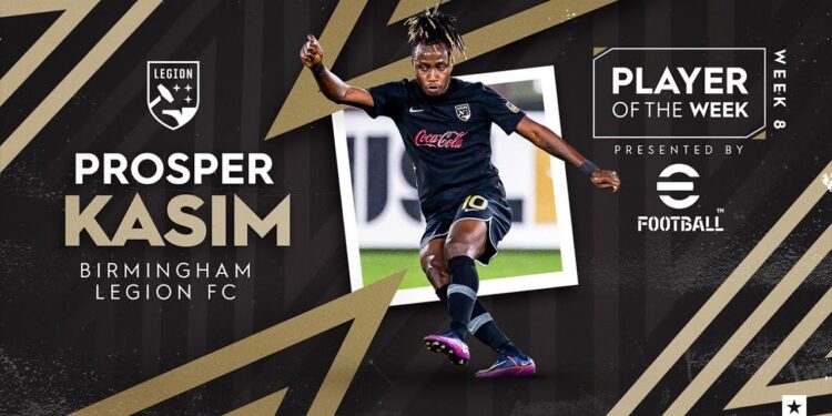 Ghanaian midfielder Prosper Kasim Stars in Birmingham Legion FC’s 2-1 Win over Charleston Battery in the United States of America Soccer league.